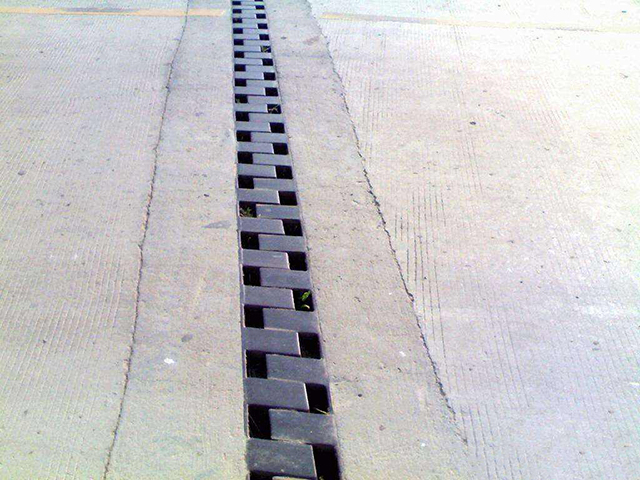 橋梁伸縮縫裝置指的是為滿足橋面變形的要求,通常在兩梁端之間、梁端與橋臺之間或橋梁的鉸接位置上設(shè)置伸縮縫。要求伸縮縫在平行、垂直于橋梁軸線的兩個方向,均能自由伸縮,牢固可靠,車輛行駛過時應(yīng)平順、無突跳與噪聲;要能防止雨水和垃圾泥土滲入阻塞;安裝、檢查、養(yǎng)護(hù)、消除污物都要簡易方便。在設(shè)置伸縮縫處,欄桿與橋面鋪裝都要斷開。